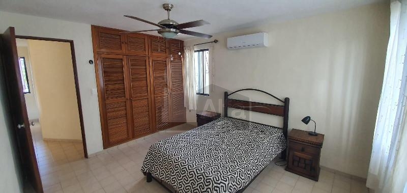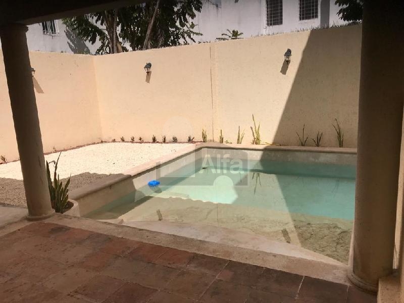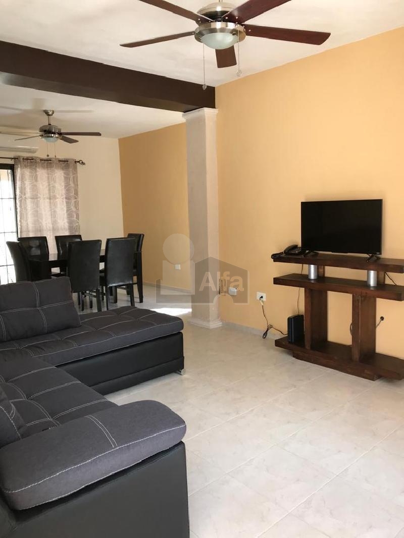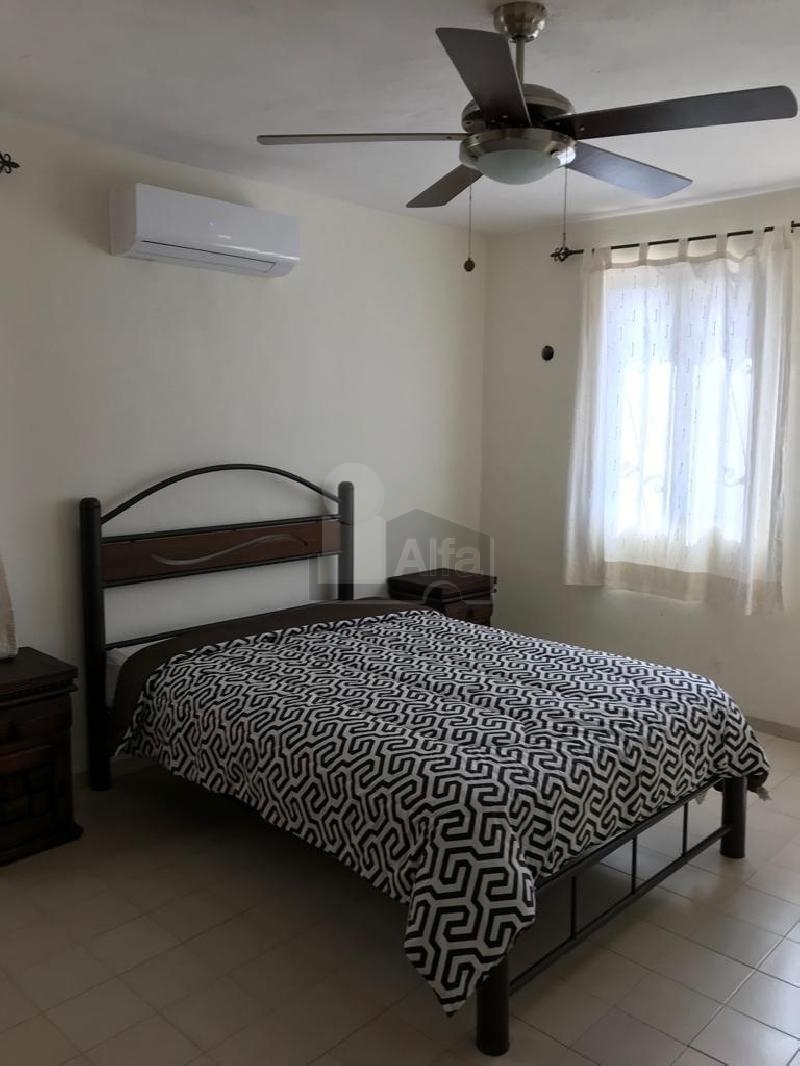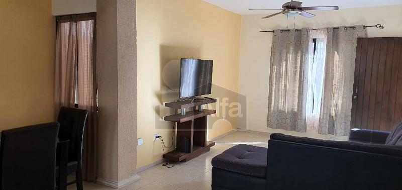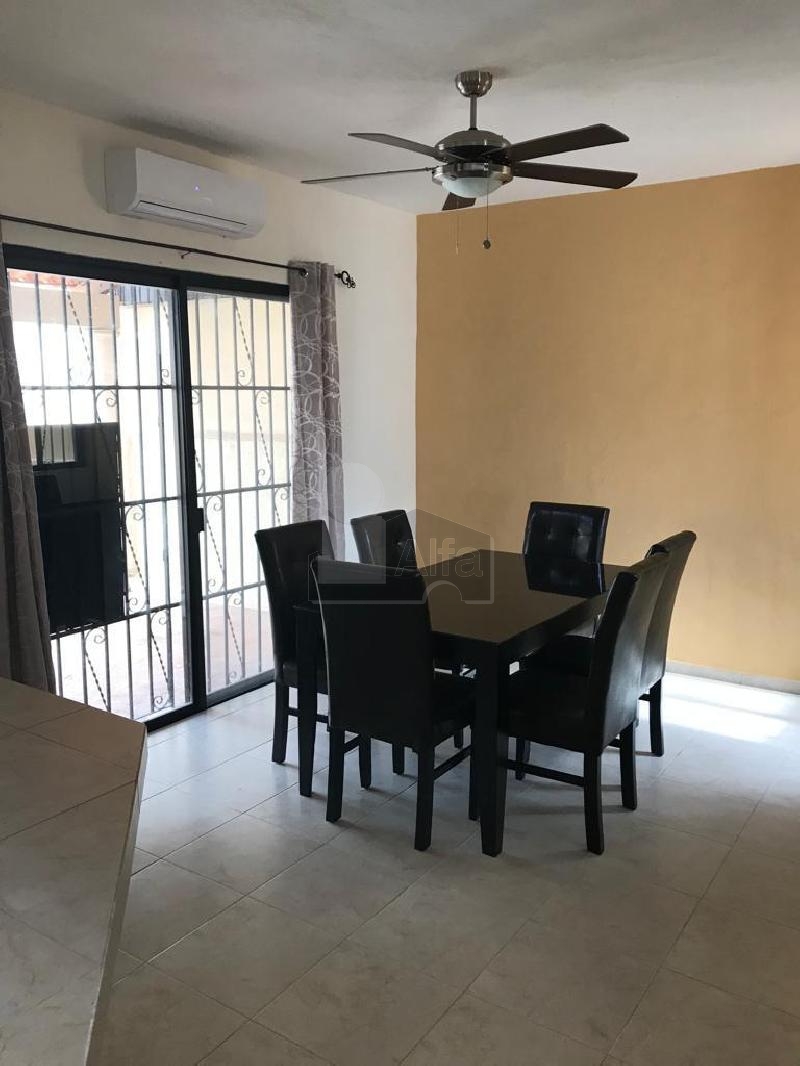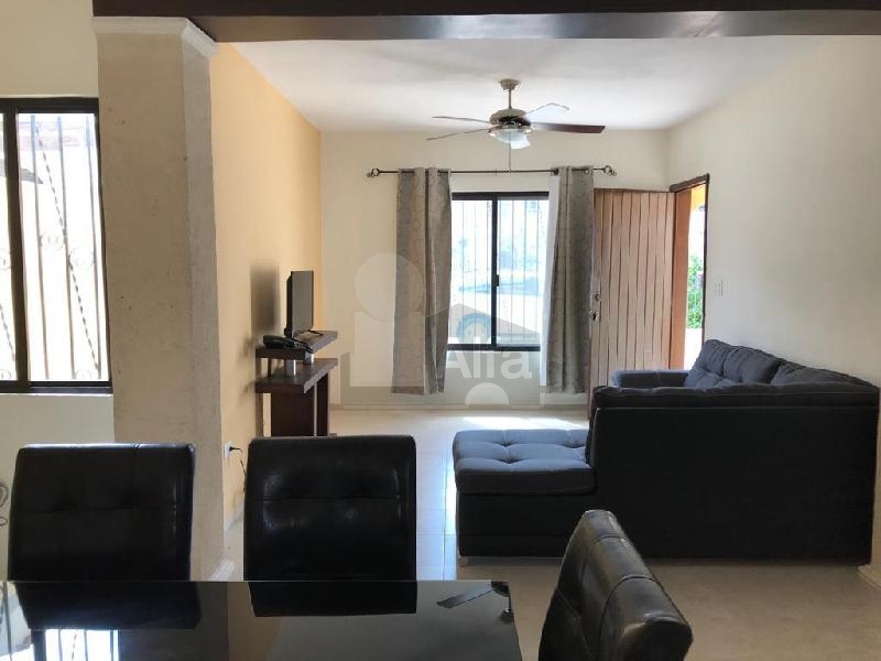 Casa amueblada, 2 recamaras, 1 baño completo, baño de visita, alberca. Sala Comedor. Cocina, gavetas en cocina, Aire acondicionado, ventiladores de techo, closet de madera en una habitacion, terraza trasera, espacio para un coche, protecciones en ventanas. Lavadora.