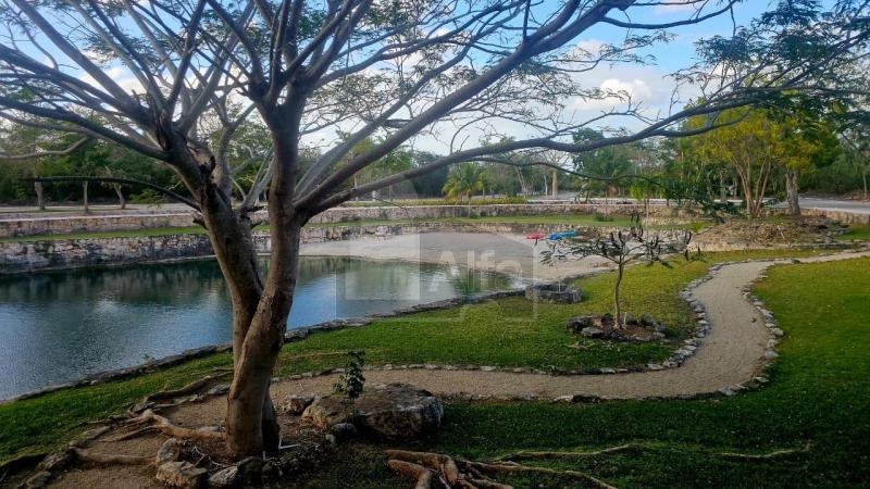 Terreno en venta en Residencial Puerta de Agua, Paraíso en privada, totalmente bardeado, acceso controlado con caseta de vigilancia y pluma, circuito cerrado de televisión, electricidad subterránea, cenote natural, kayak, canchas de fútbol y pádel, canal de nado, parque infantil, asadores, ruta para caminar o correr, área social con cocina, comedores, baños y terraza en planta alta para eventos.
