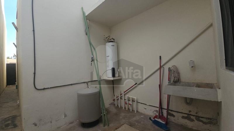 PLANTA BAJA: Estancia en la entrada principal, sala y comedor corridos con A/C, plafón de tablaroca con iluminación indirecta, ampliación de sala familiar o televisión, cocina amplia con gavetas de madera e iluminación, puerta corrediza de madera y bodega en pasillo lateral, estudio o habitación con clóset, escritorio y aire acondicionado, baño de visitas, baño de servicio, cuarto de servicio, lavadero, área de lavado, terraza techada, piscina y sistema de riego con temporizador, cochera techada para 2 autos y jardín con iluminación; todas las puertas de la casa cuentan con topes.