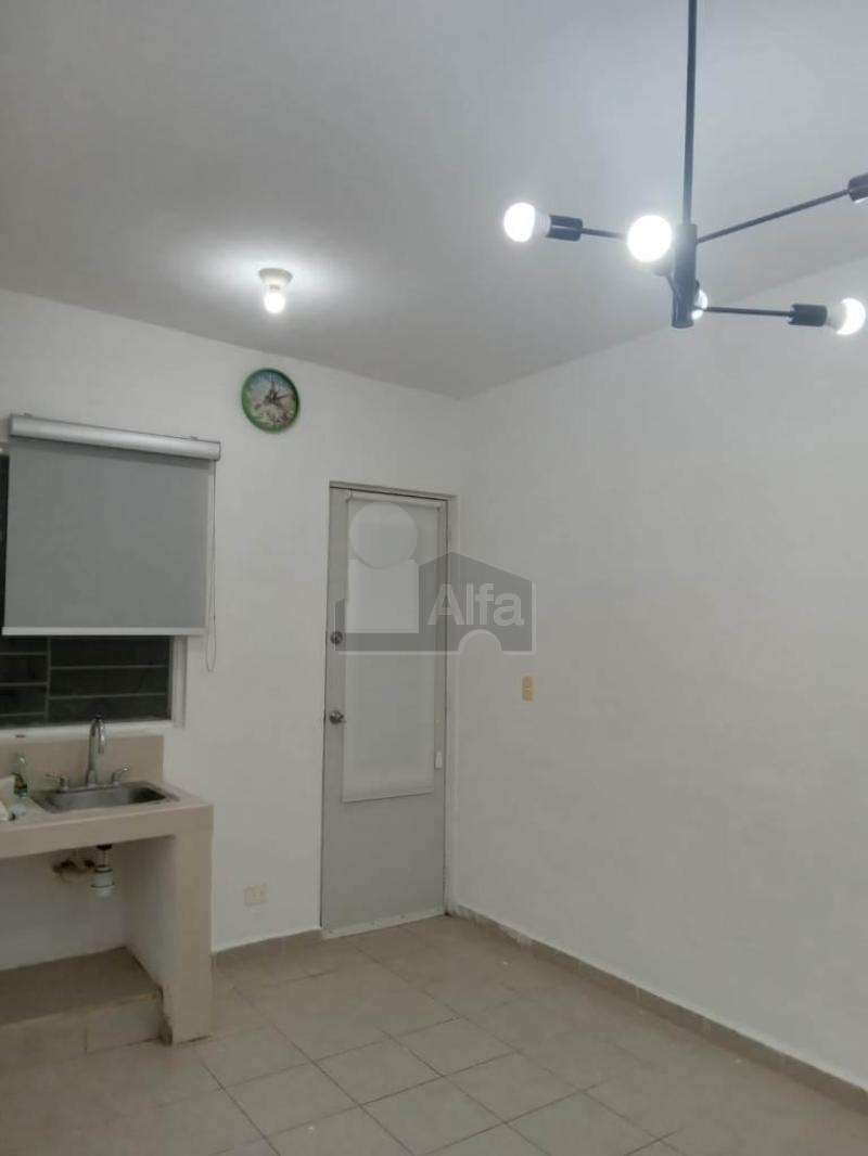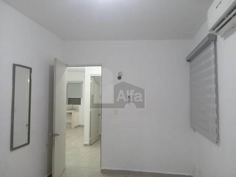 Sala-Comedor corridos con pisos de cerámica, lámpara de diseño tipo industrial, cocina con meseta de concreto pulido y tarja de acero inoxidable, dos habitaciones amplias equipadas con aire mini Split, cortinas enrollables de tipo "Zebra"; ambas habitaciones cuentan con baño propio, uno de ellos con acabado en muro de piedra gris y nicho decorativo en la ducha; el segundo con diseño funcional con cancelería de aluminio, estacionamiento frontal, las ventanas cuentan con protectores; a poca distancia de comercios, supermercados, escuelas, servicios de salud , ciclovías, transporte público, parques.