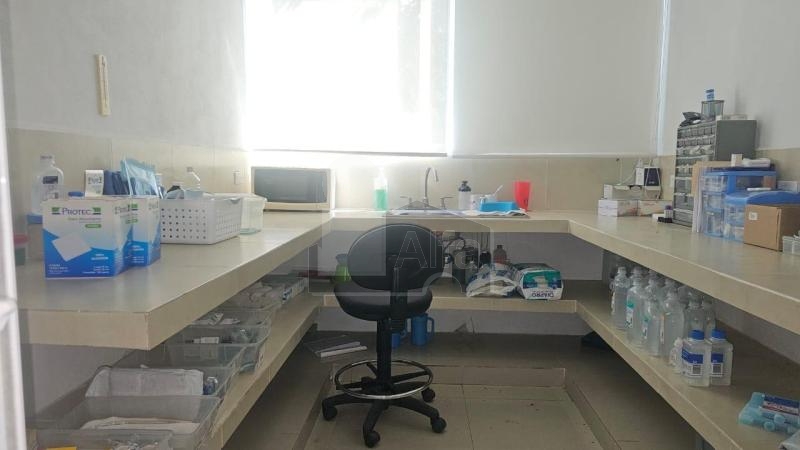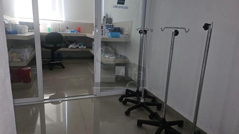 Estacionamiento para 3 autos techado, área de recepción, 2 baños y 1 medio baño de visitas, área para farmacia, sala de médicos o de juntas, 6 consultorios o privados, pasillo para archivos, laboratorio con aire acondicionado, área de cafetería o comedor, cuarto de máquinas, presurizador de agua, jardín interior, cámaras de seguridad 7, aires acondicionados totales 12, interfon. Cómo clínica se entregaria con camas, tanques y otros equipamientos. A poca distancia del centro de la ciudad, del ayuntamiento. Calle de mucho flujo vehicular, rodeado de negocios.